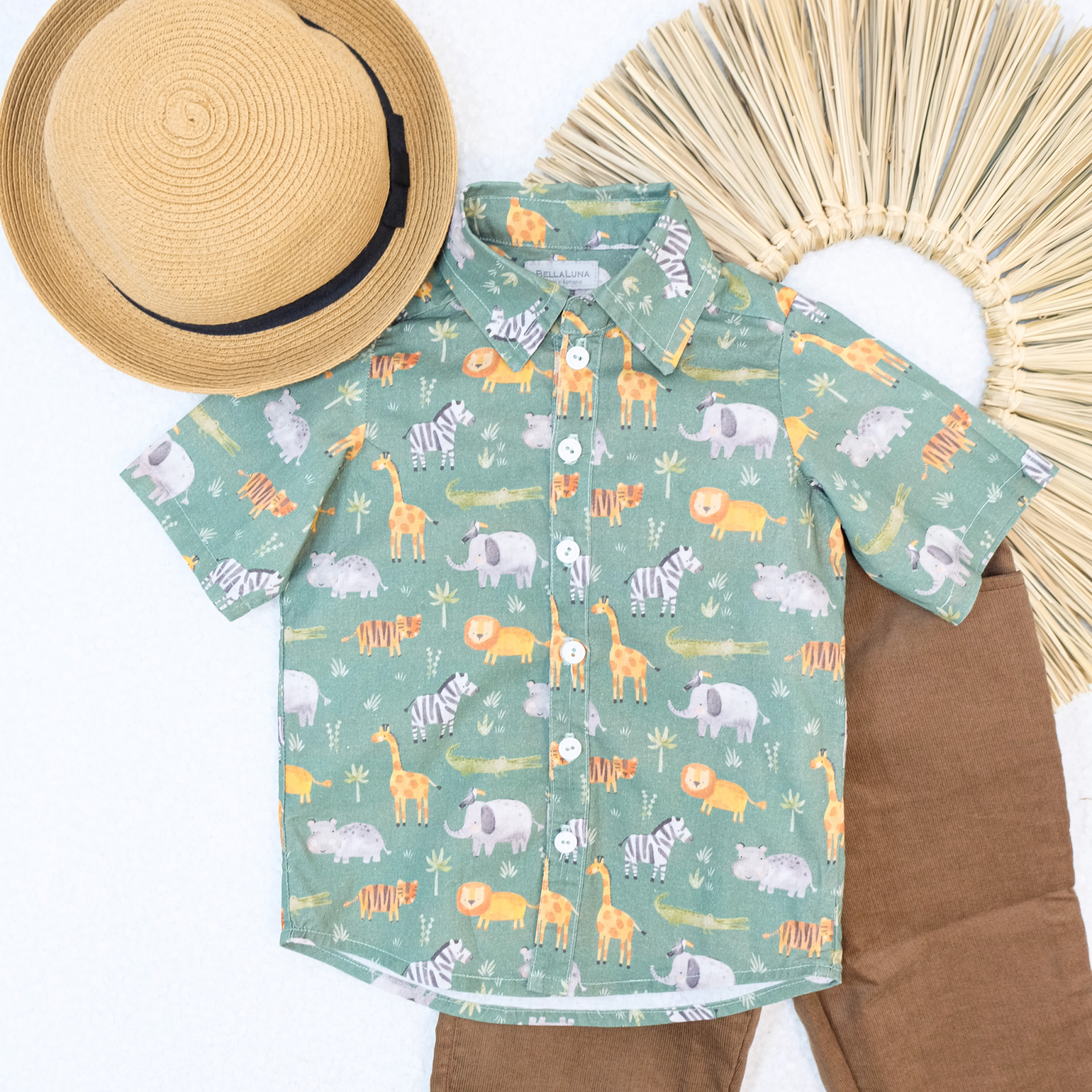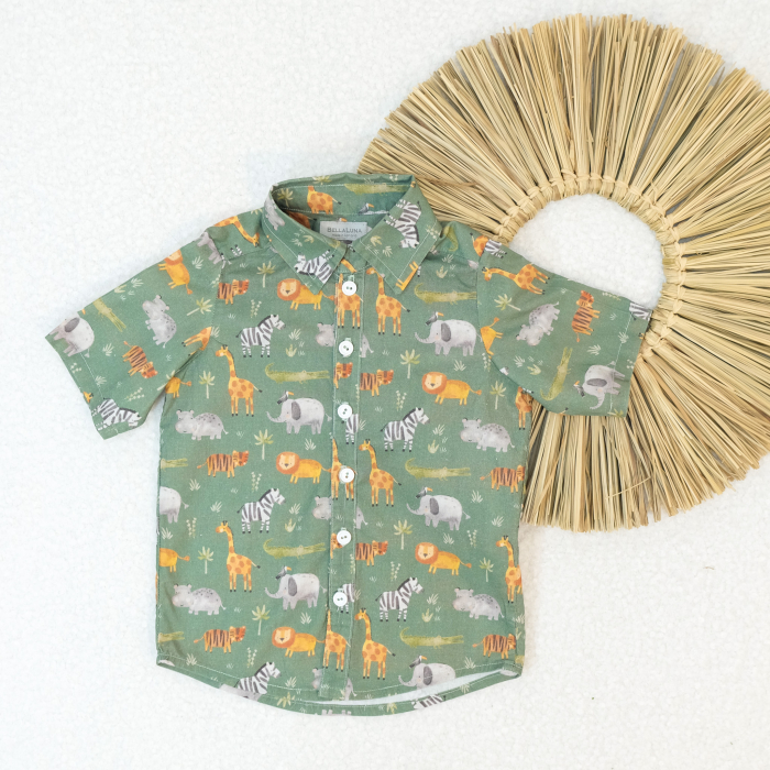 Cămașa este realizată din bumbac organic. Toate materialele folosite în realizarea hainutelor sunt certificate OEKO-TEX.