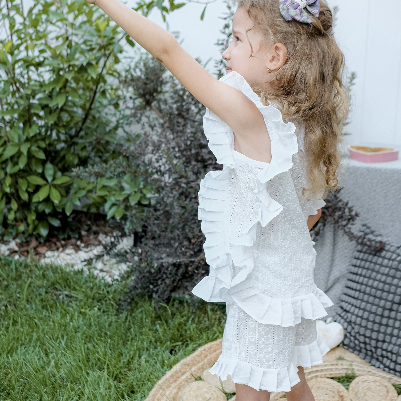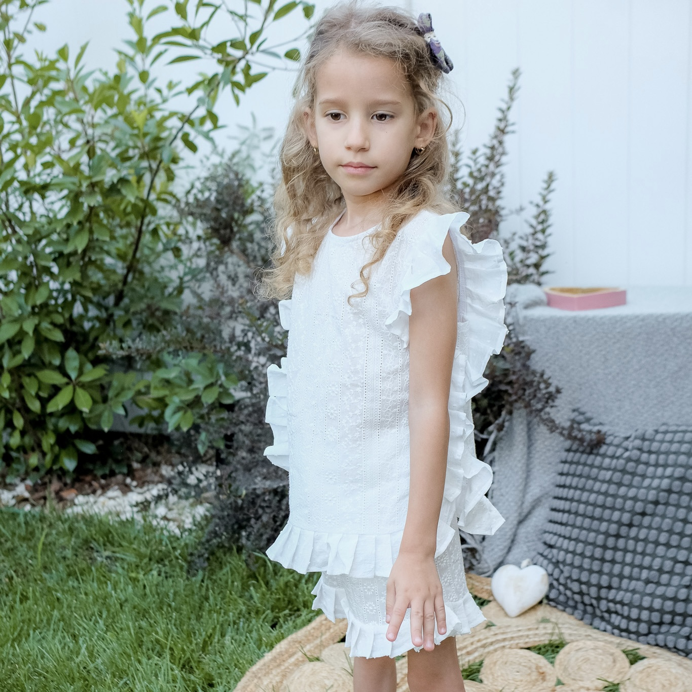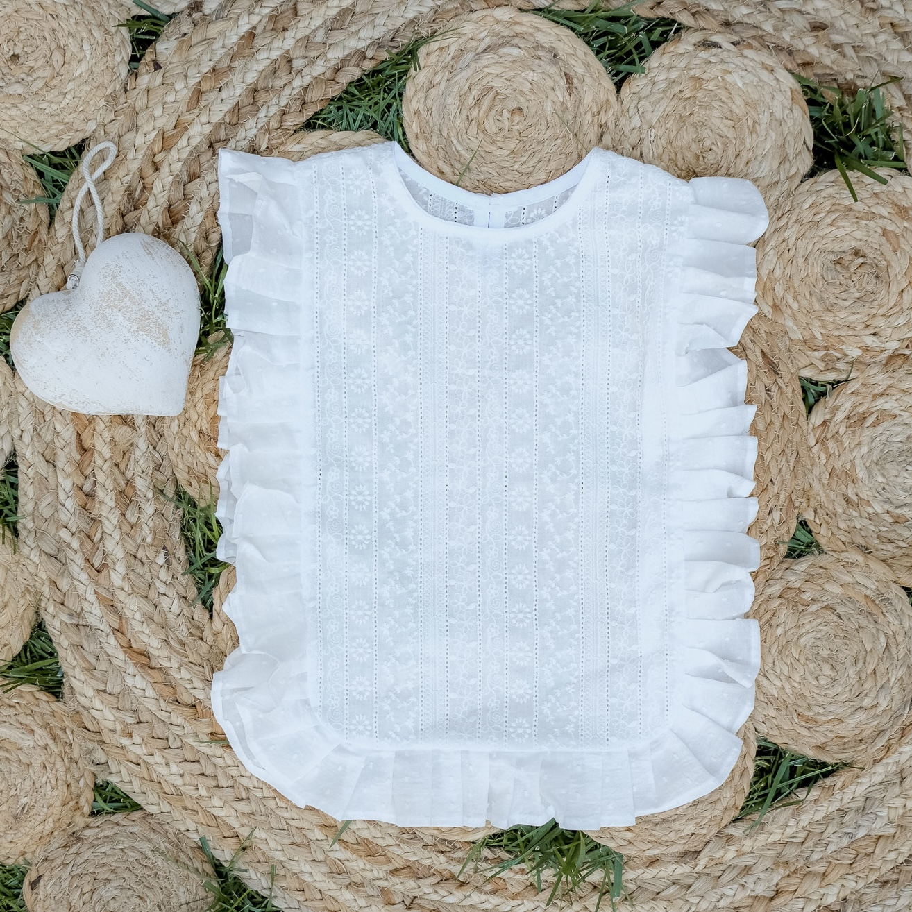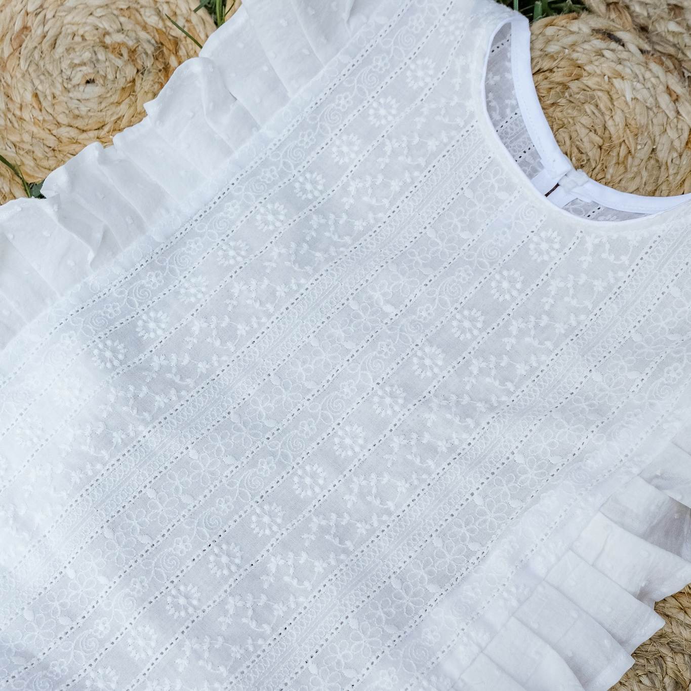 Bluza din bumbac brodat și volanase