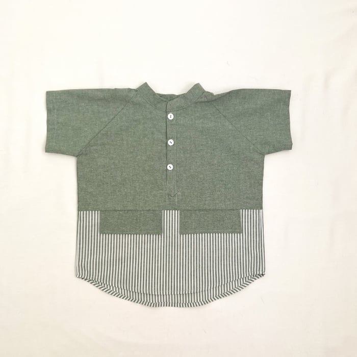 Cămașa este realizată din bumbac organic. Toate materialele folosite în realizarea hainutelor sunt certificate OEKO-TEX.