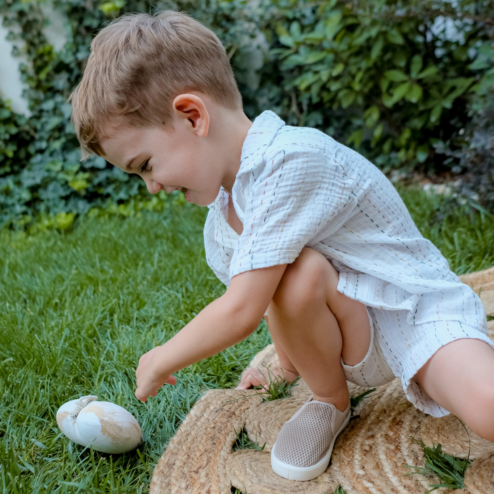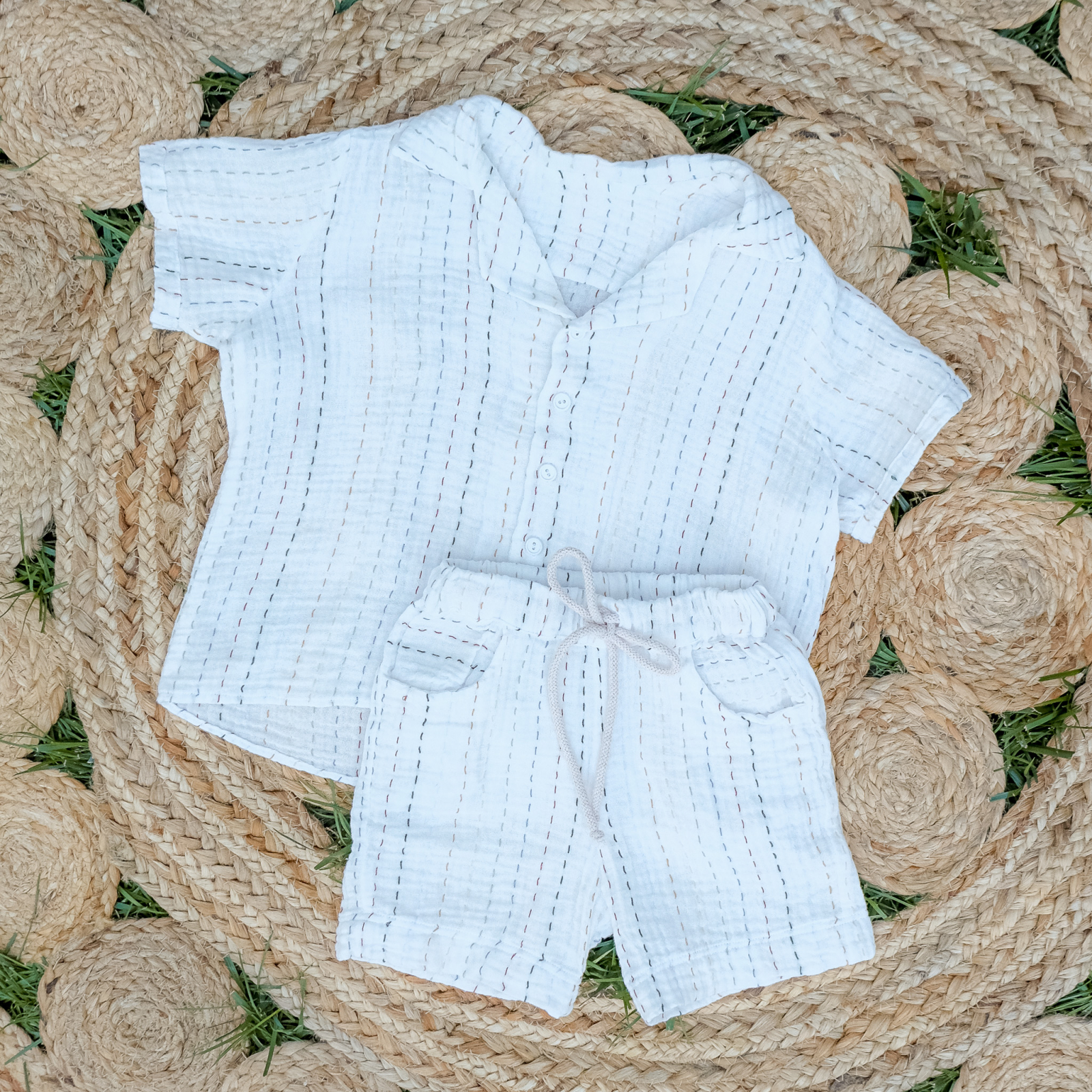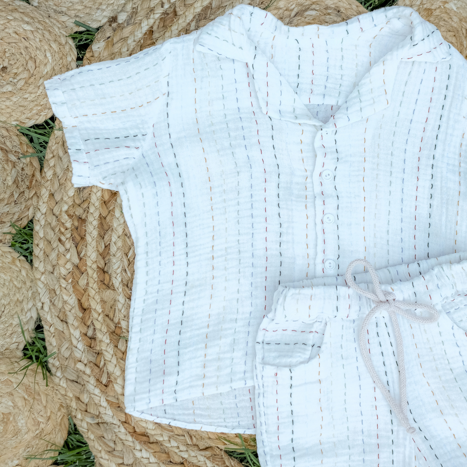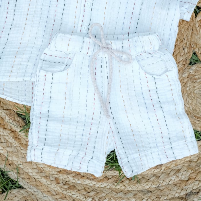 Cămașa este realizată din muselina moale. Toate materialele folosite în realizarea hainutelor sunt certificate OEKO-TEX.
