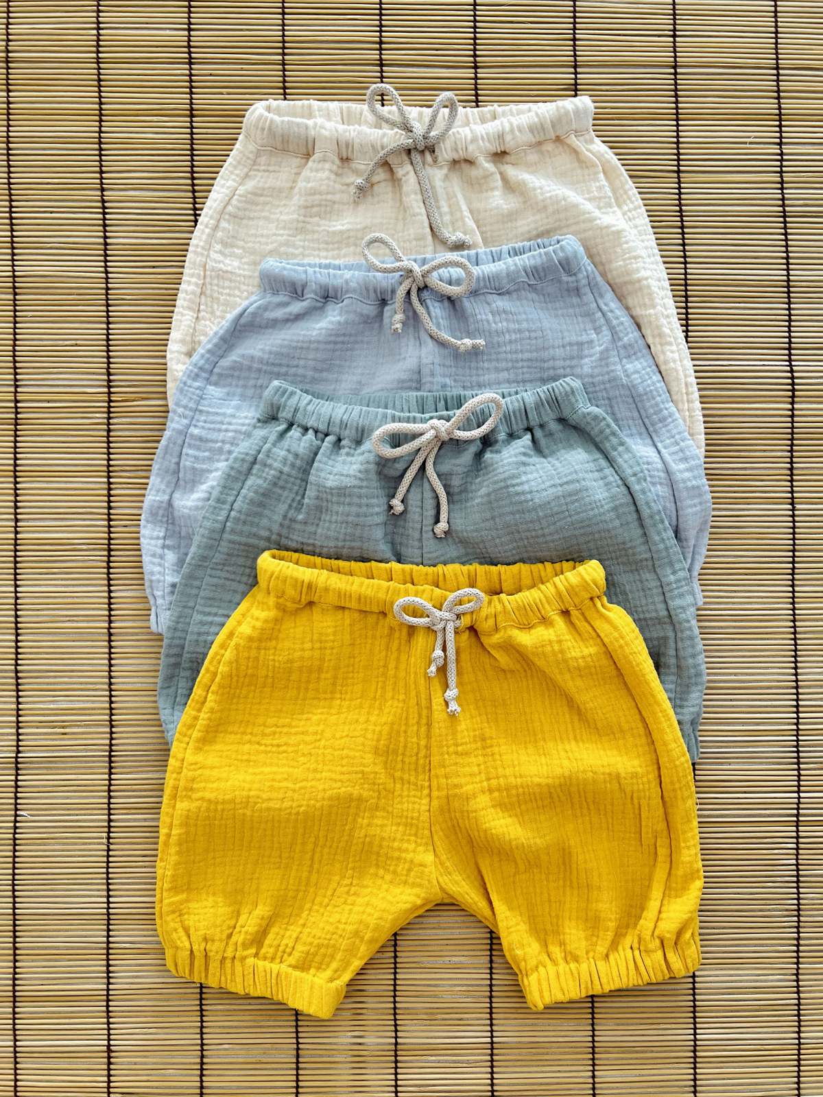 Pantalonii sunt realizați din muselină dublu strat. Toate materialele folosite în realizarea rochițelor sunt certificate OEKO-TEX.