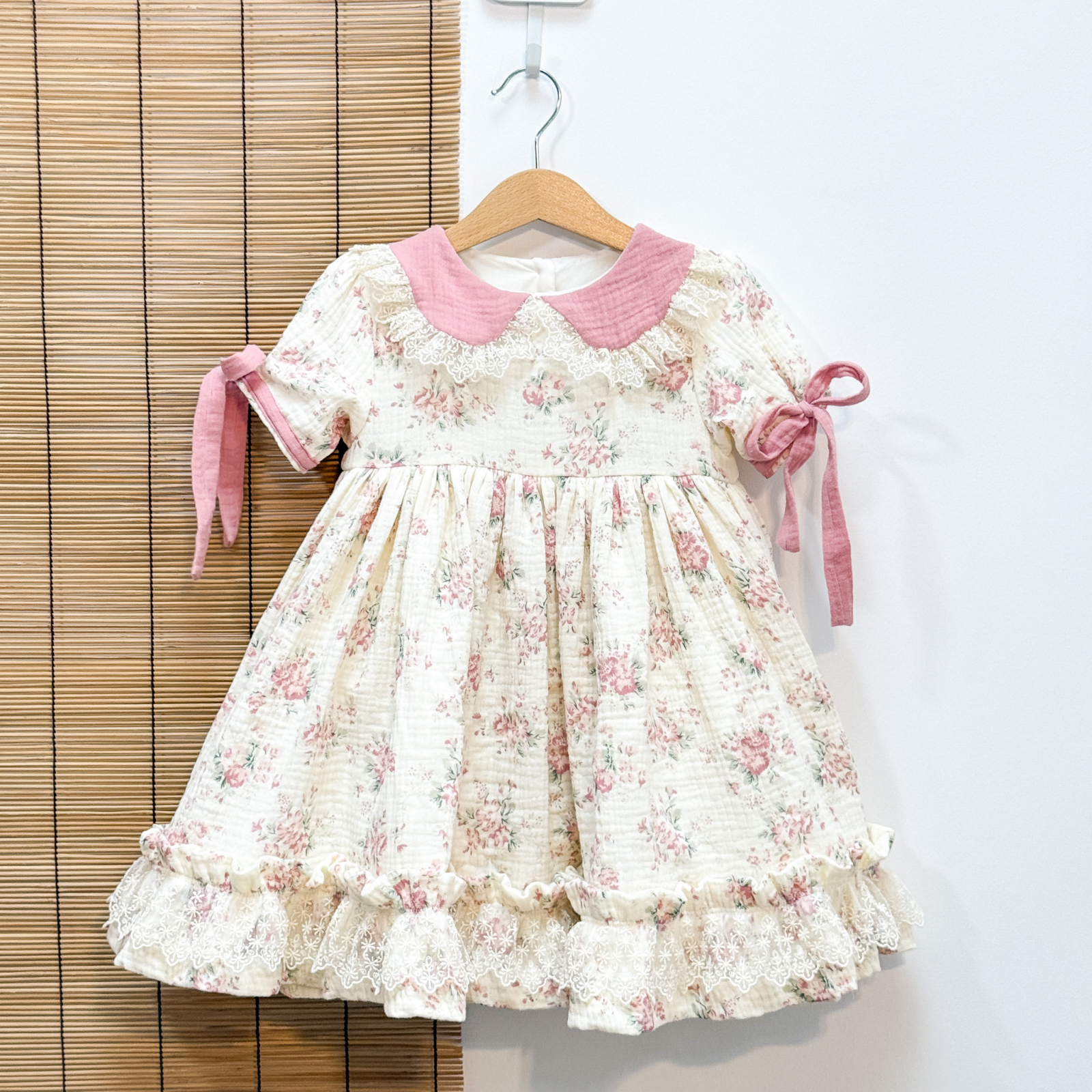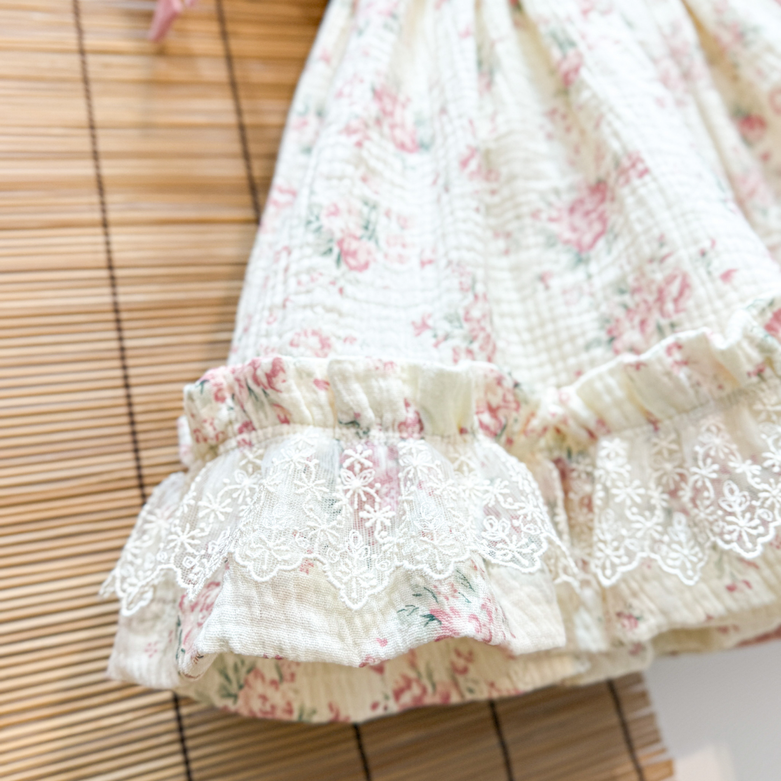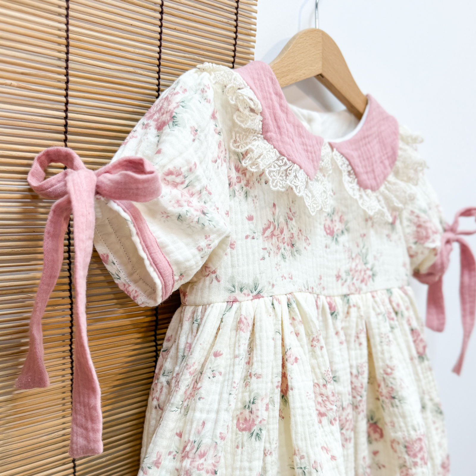 Rochita este realizata din vascoza satinata cu un luciu subtil si organza fina. Captuseala este bumbac 100% pentru confortul celor mici